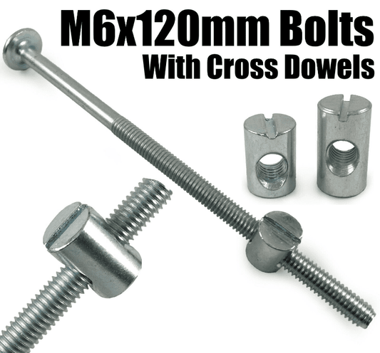 M8X100mm Furniture Connector Bolts & Cross Dowel Barrel Nuts Unit Bed Cot Desk