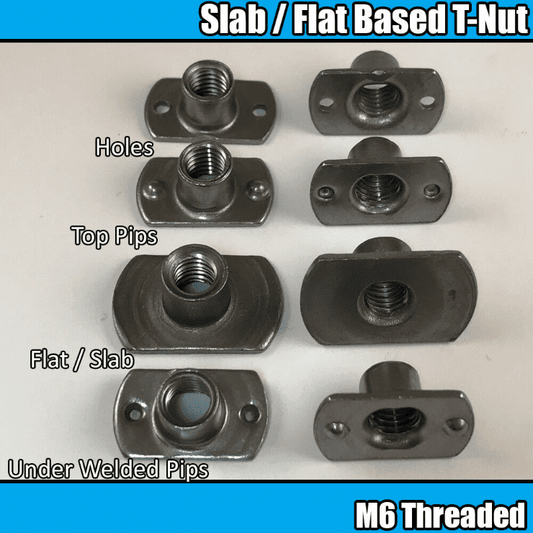 M6 Carbon Steel Tee Spot Slab Based T Shape Nuts 2 Welded Pips, Holes & Flat