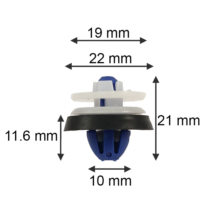 Interior Door Card Trim Panel Mounting Fastener Clips - Blue / White Plastic With Washer