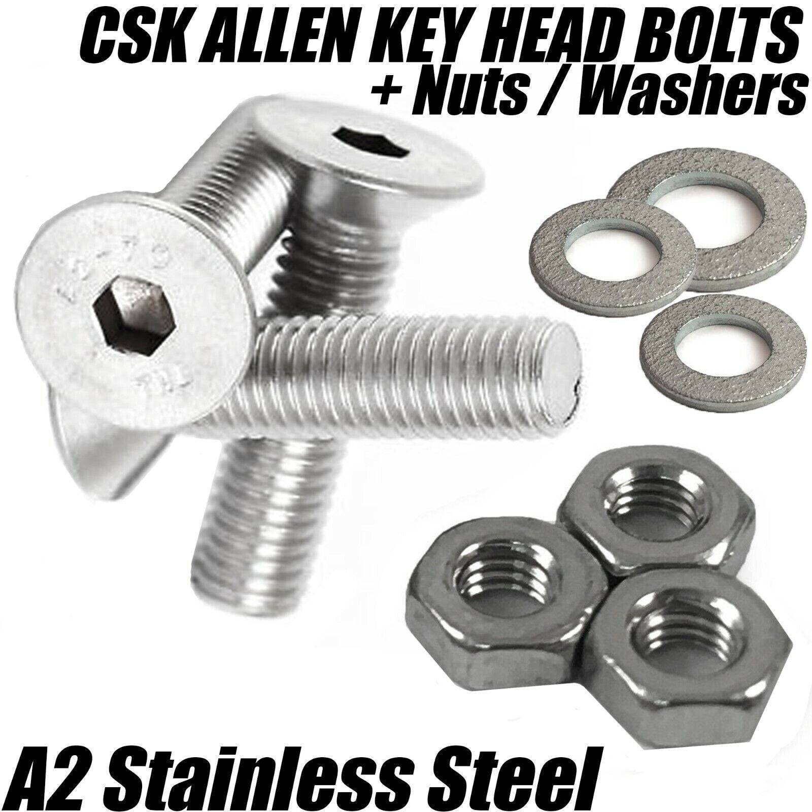 M10 A2 Stainless Steel Countersunk Screws Socket Bolts & Full Hex Nuts Washers 12mm - 90mm