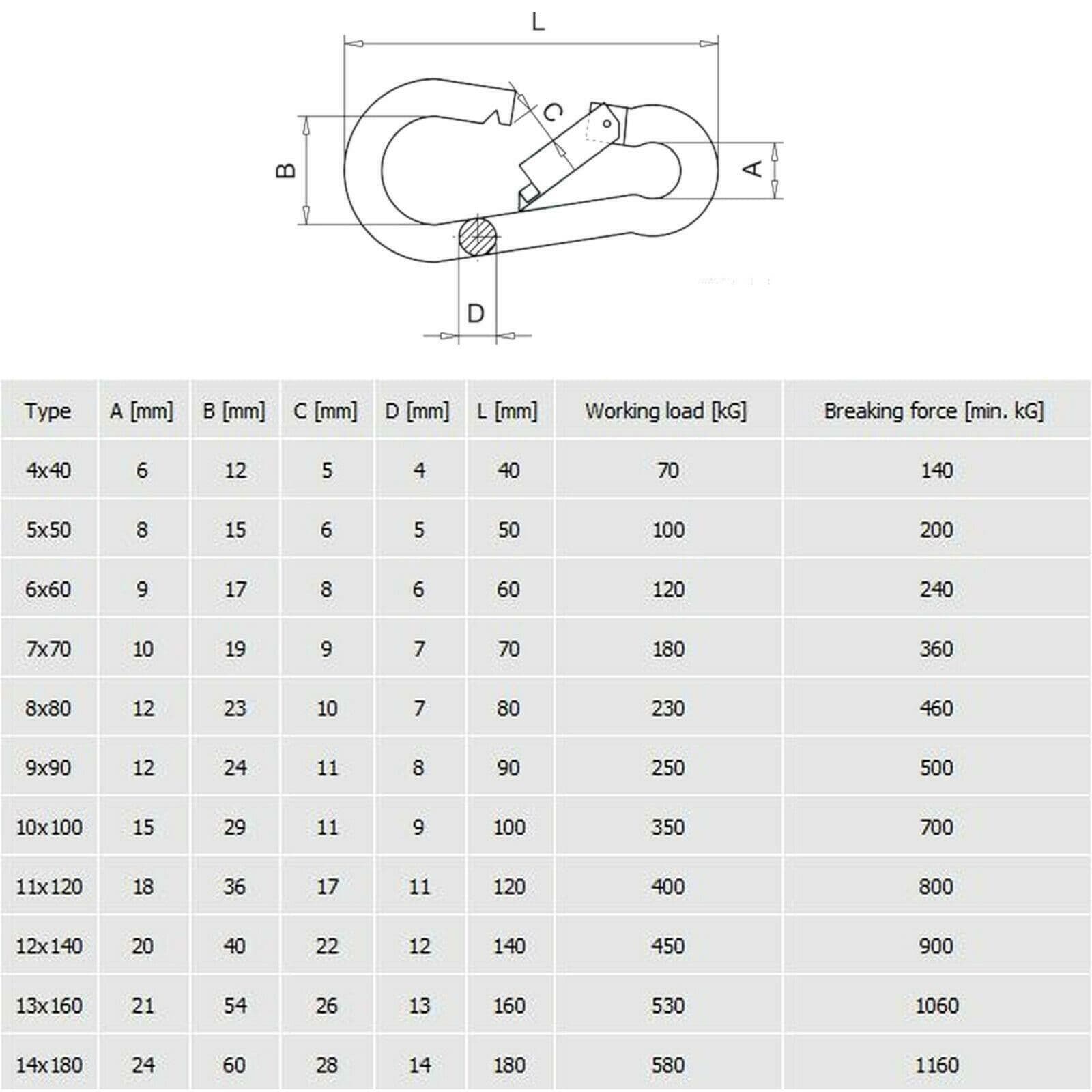 Be sure to check the provided chart for the safe working loads, and maximum breaking loads