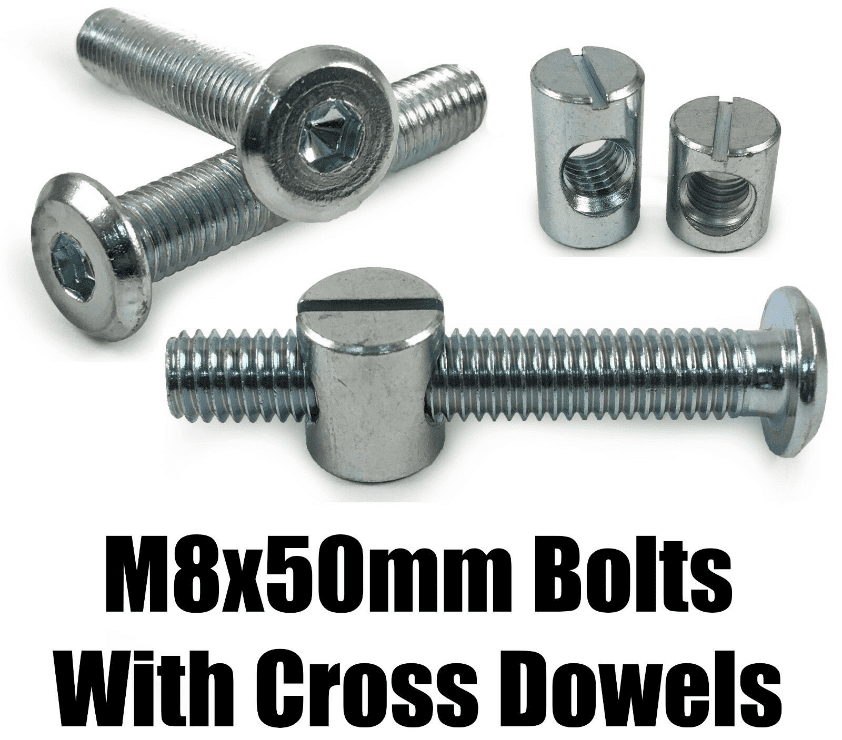 M8x50mm CONNECTOR BOLTS with Cross Dowels / Barrel Nuts