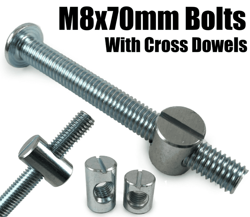 M8x70mm CONNECTOR BOLTS with Cross Dowels / Barrel Nuts